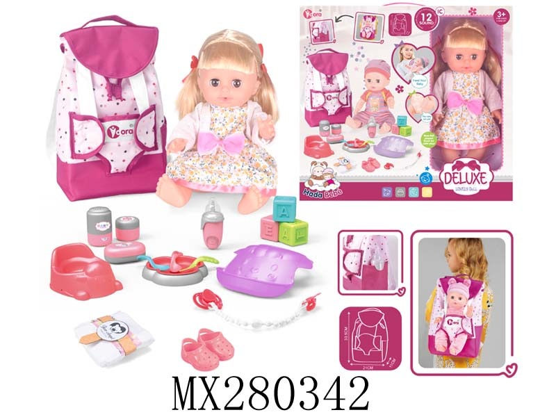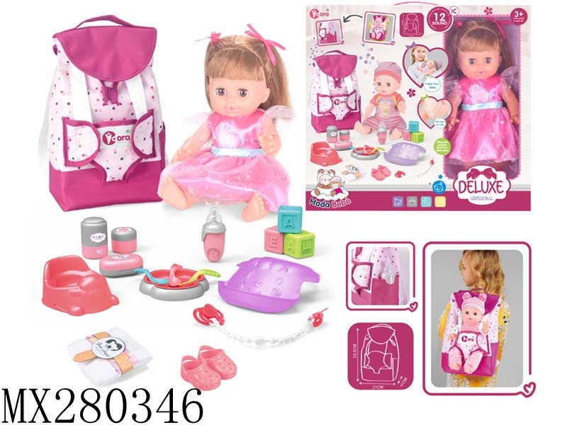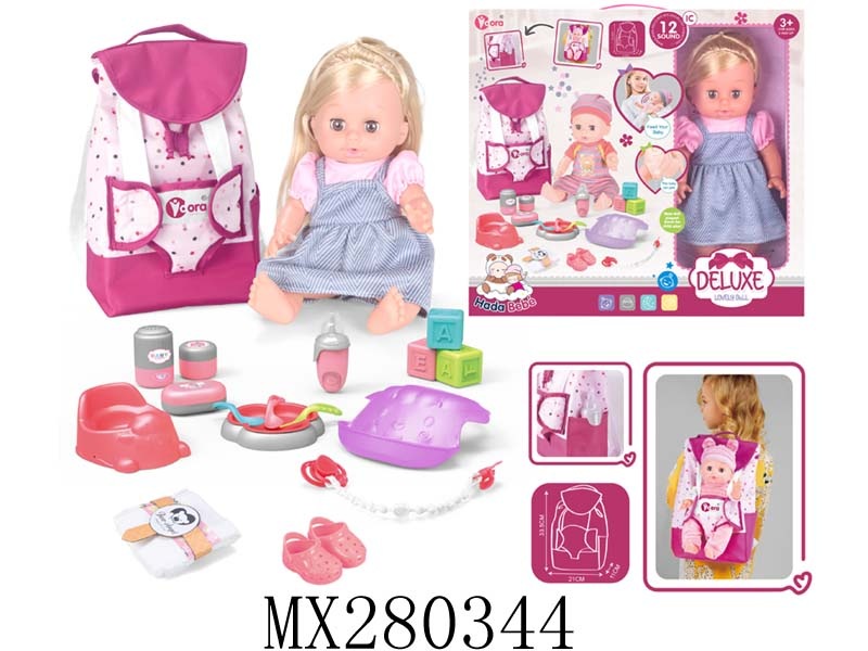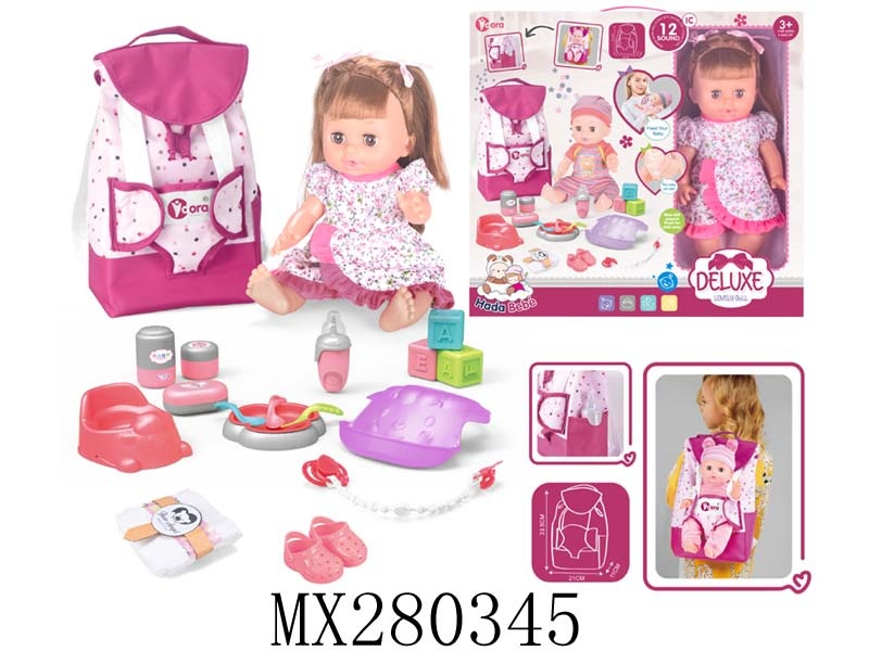14寸搪胶娃娃护理书包套装(喝水,尿尿,12声IC)