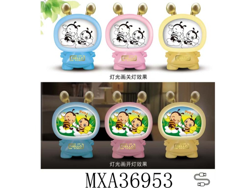 卡通小蜜蜂灯光画小夜灯三色(粉黄蓝色)