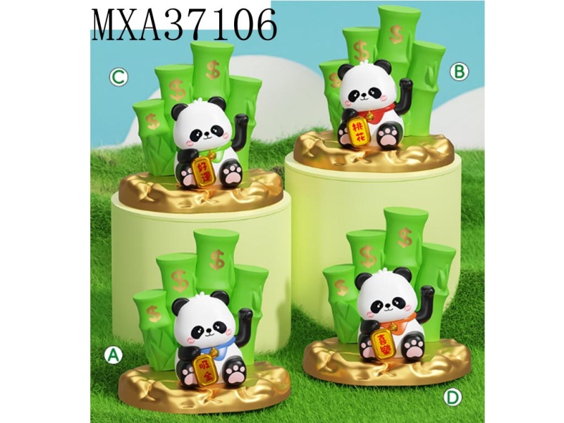 竹载百福熊猫招财摆件小号2寸