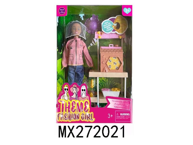 高档时装主题11.5寸活手实身黑人芭比采蜂人带蜜蜂箱
