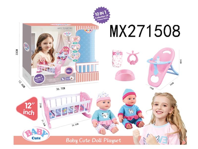 12寸高档喝水娃娃公仔10合1套装/2色衣服混装/6声IC 包电