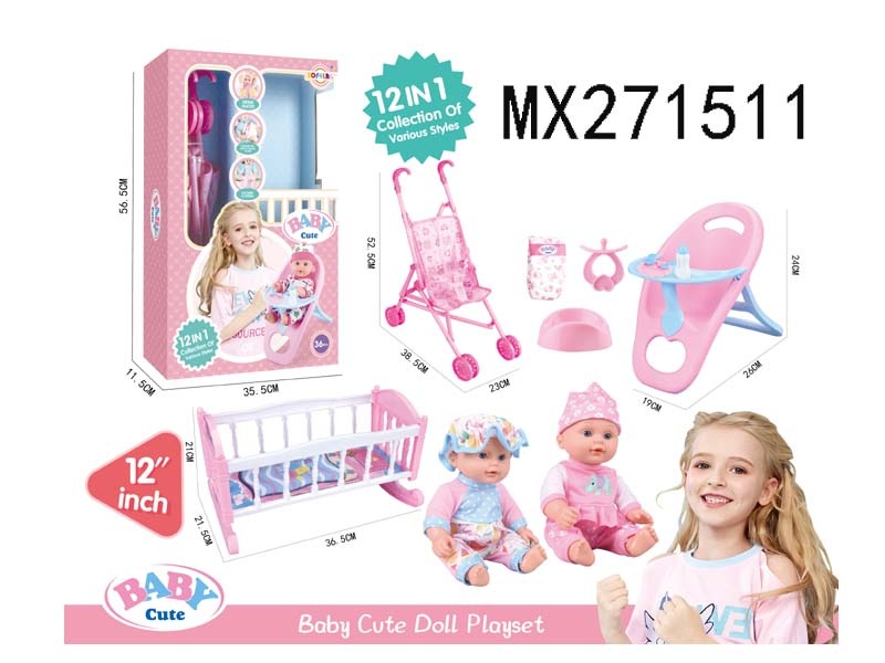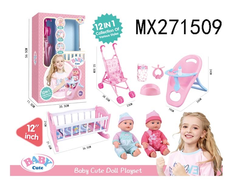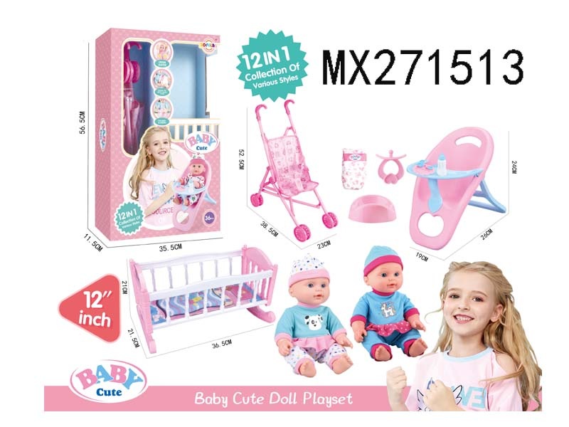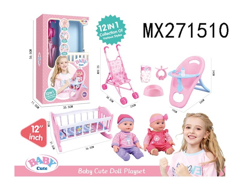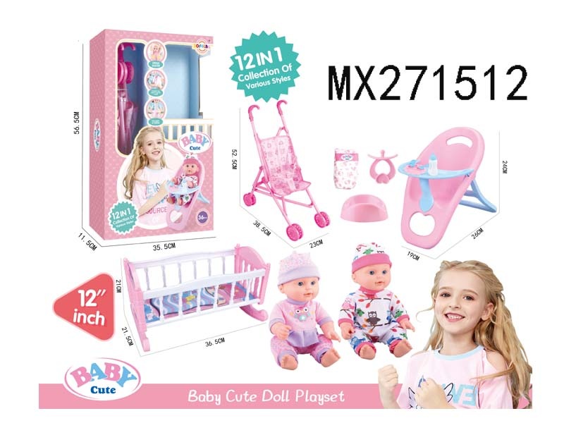 12寸高档喝水娃娃公仔12合1套装/2色衣服混装/6声IC 包电