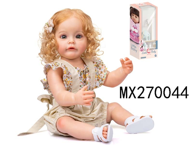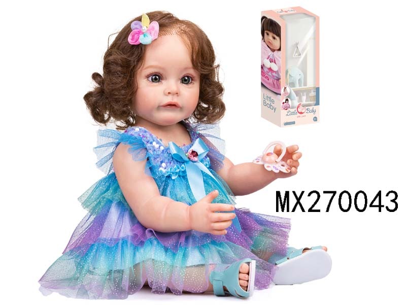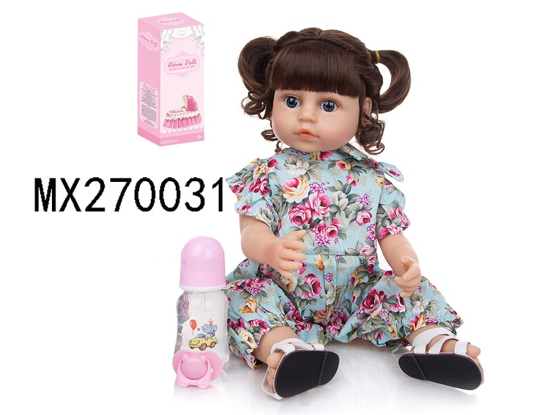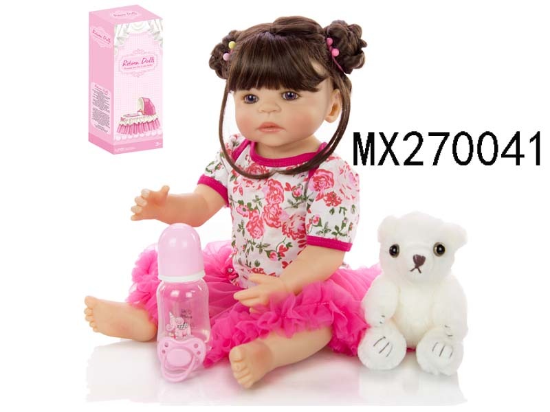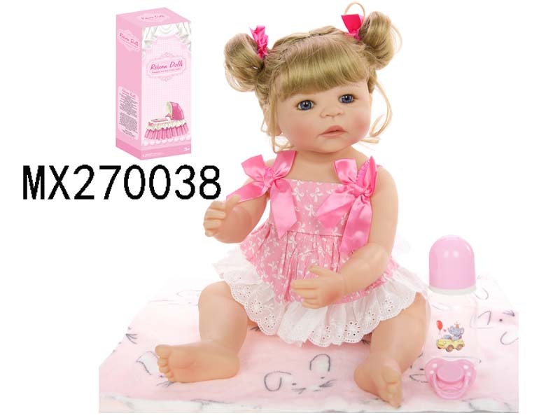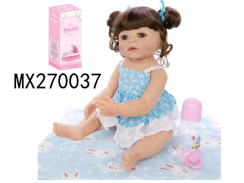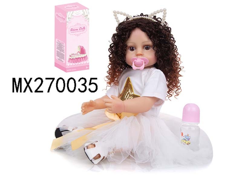 55厘米重生娃娃高仿真婴儿娃娃,(假发套)全身软胶,带奶瓶,磁性奶嘴,尿布,出生卡,凉鞋,