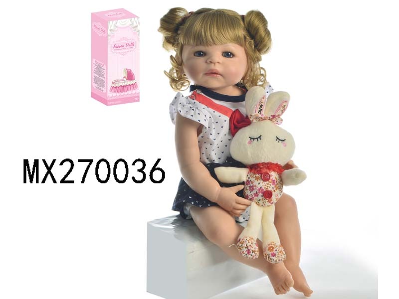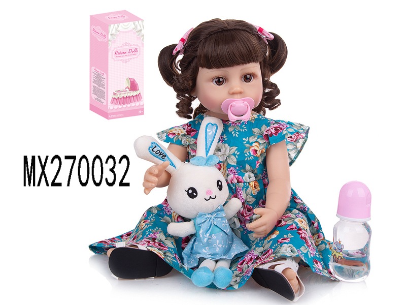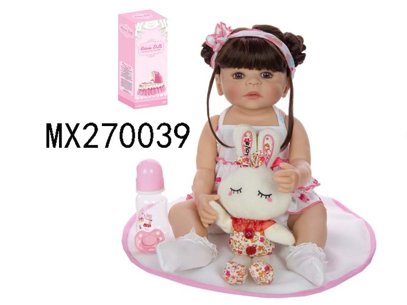 55厘米重生娃娃高仿真婴儿娃娃,(假发套)全身软胶,带奶瓶,磁性奶嘴,尿布,出生卡,凉鞋,兔子