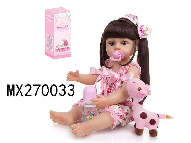 55厘米重生娃娃高仿真婴儿娃娃,(假发套)全身软胶,带奶瓶,磁性奶嘴,尿布,出生卡,长颈鹿