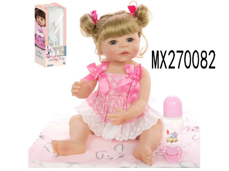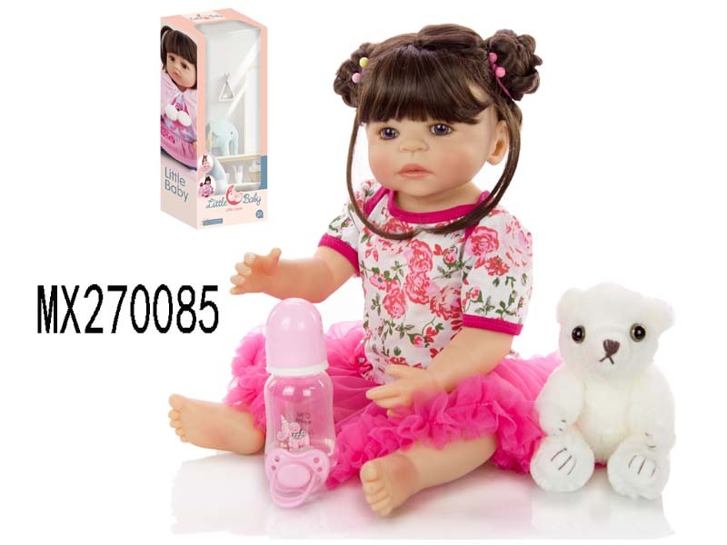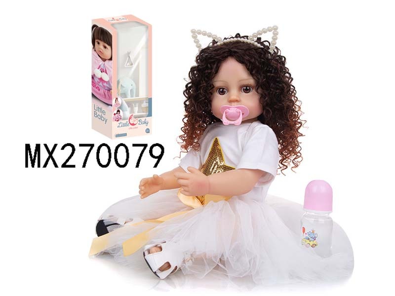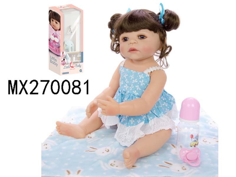 55厘米重生娃娃高仿真婴儿娃娃,(假发套)全身软胶,带奶瓶,磁性奶嘴,尿布,出生卡,凉鞋,