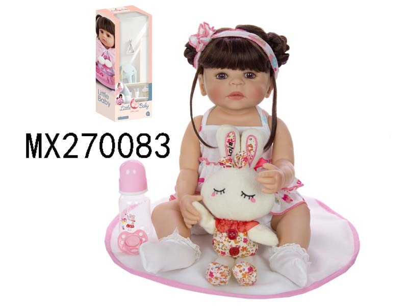 55厘米重生娃娃高仿真婴儿娃娃,(假发套)全身软胶,带奶瓶,磁性奶嘴,尿布,出生卡,闭眼兔子