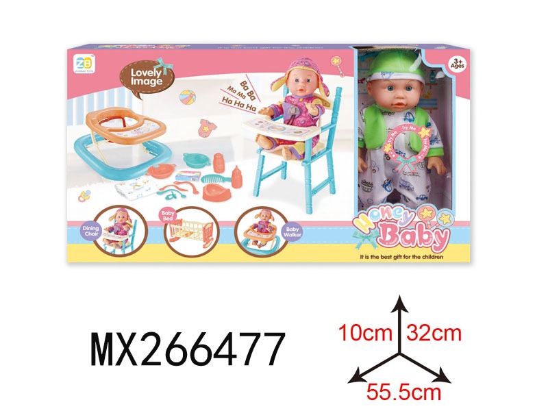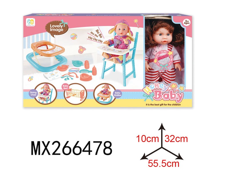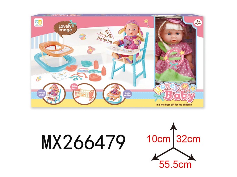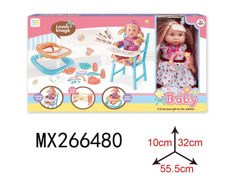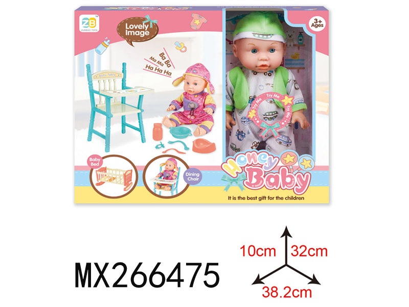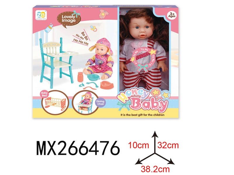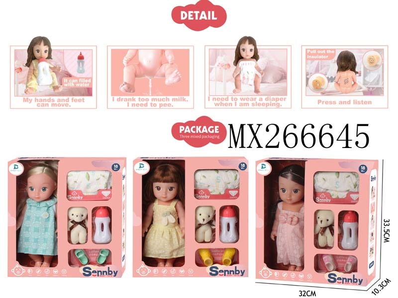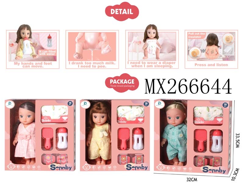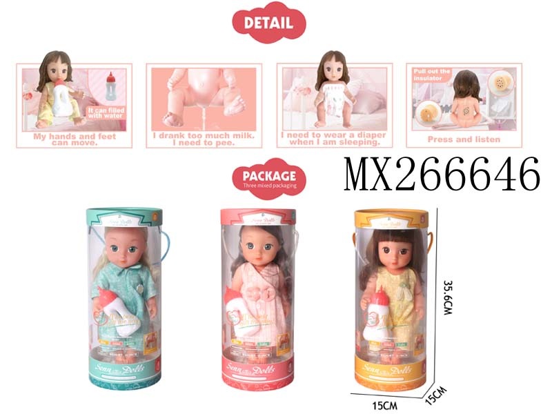 三色混装盒装梳子发绳精扮系列12英寸搪胶公仔娃娃喝水小便+12声IC功能