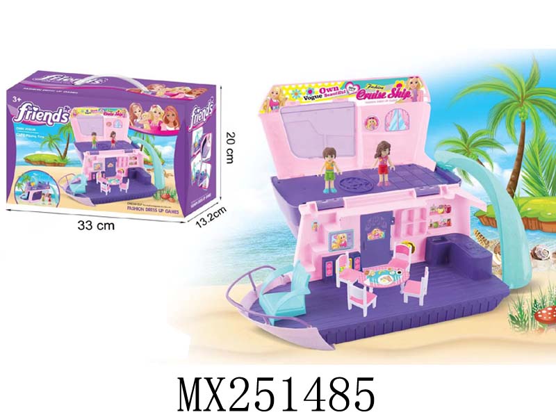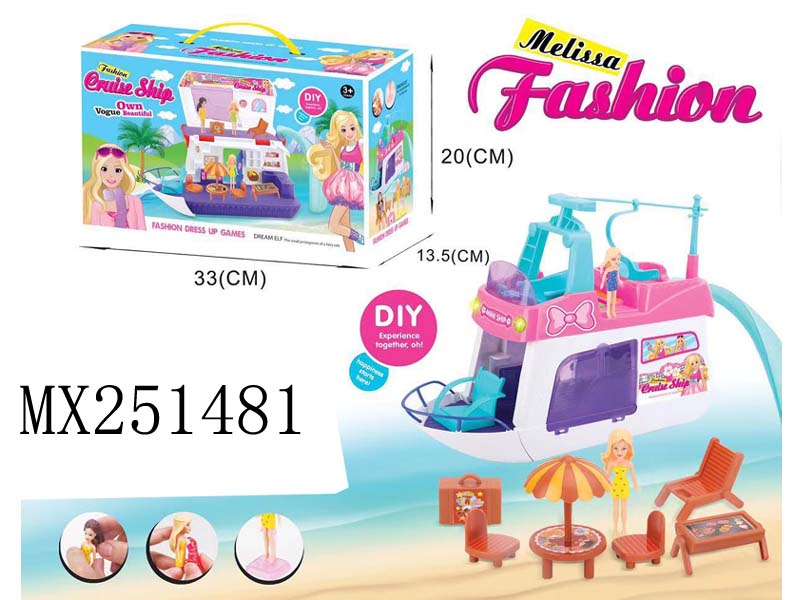 游艇配男、女公仔,户外桌椅套装