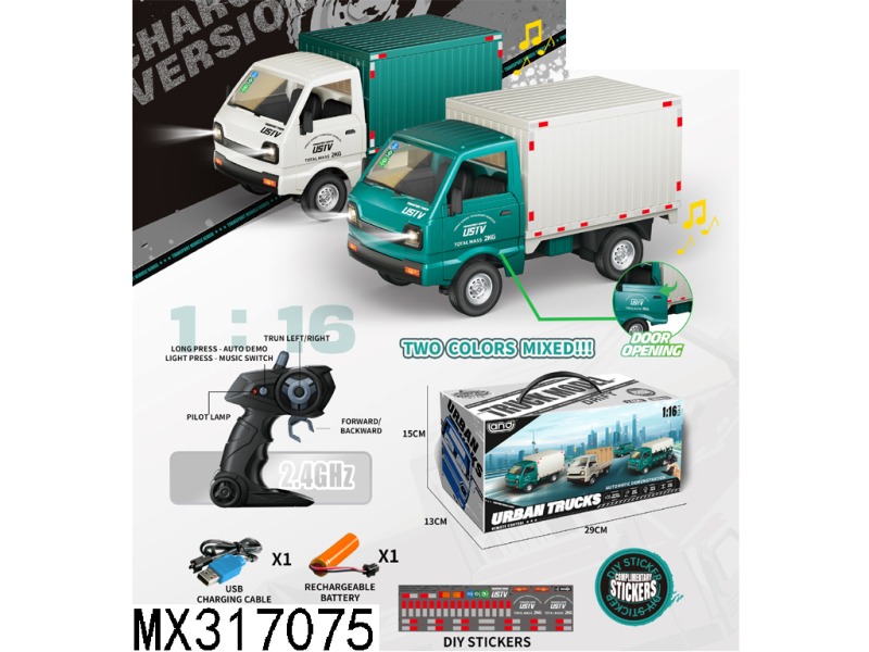 1:16六通遥控灯光城市小微车厢卡车/包电/开门声光/2色