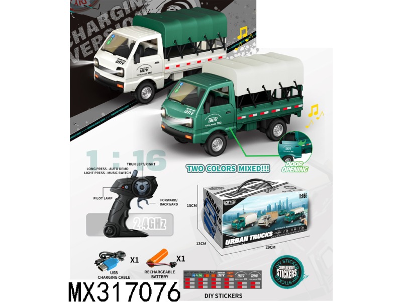 1:16六通遥控灯光城市小微车篷卡车/包电/开门声光/2色