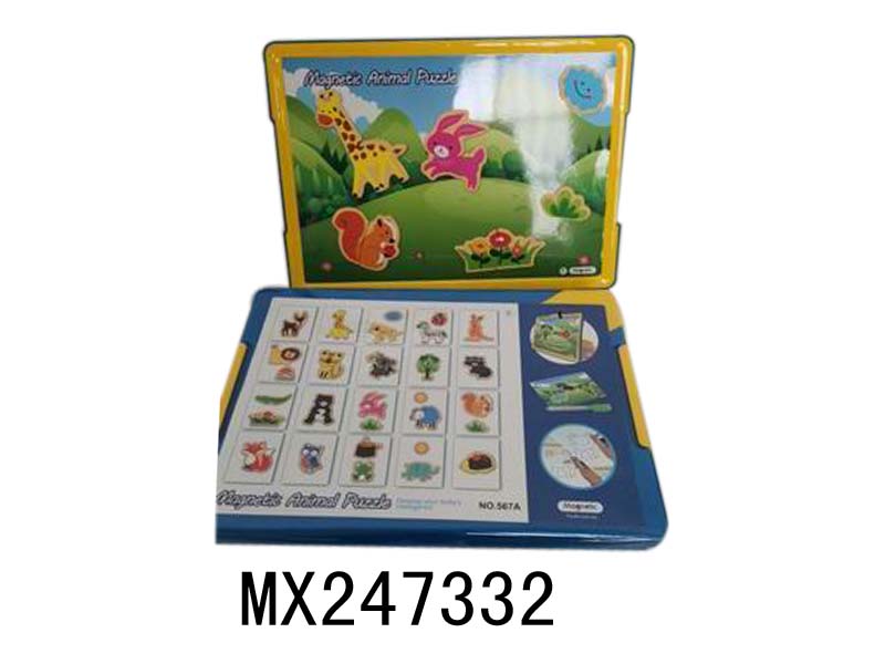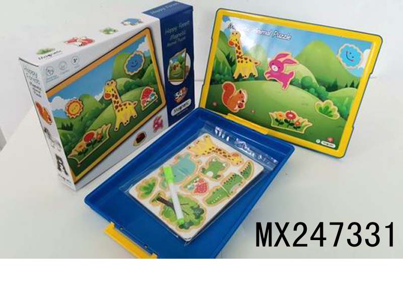 磁贴益智拼图+画板 (动物拼图54块)