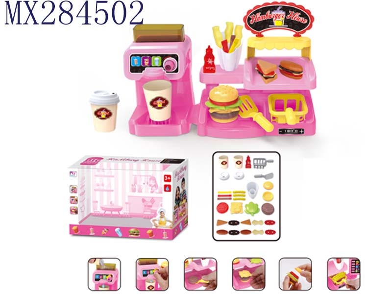 粉色咖啡机配汉堡套装