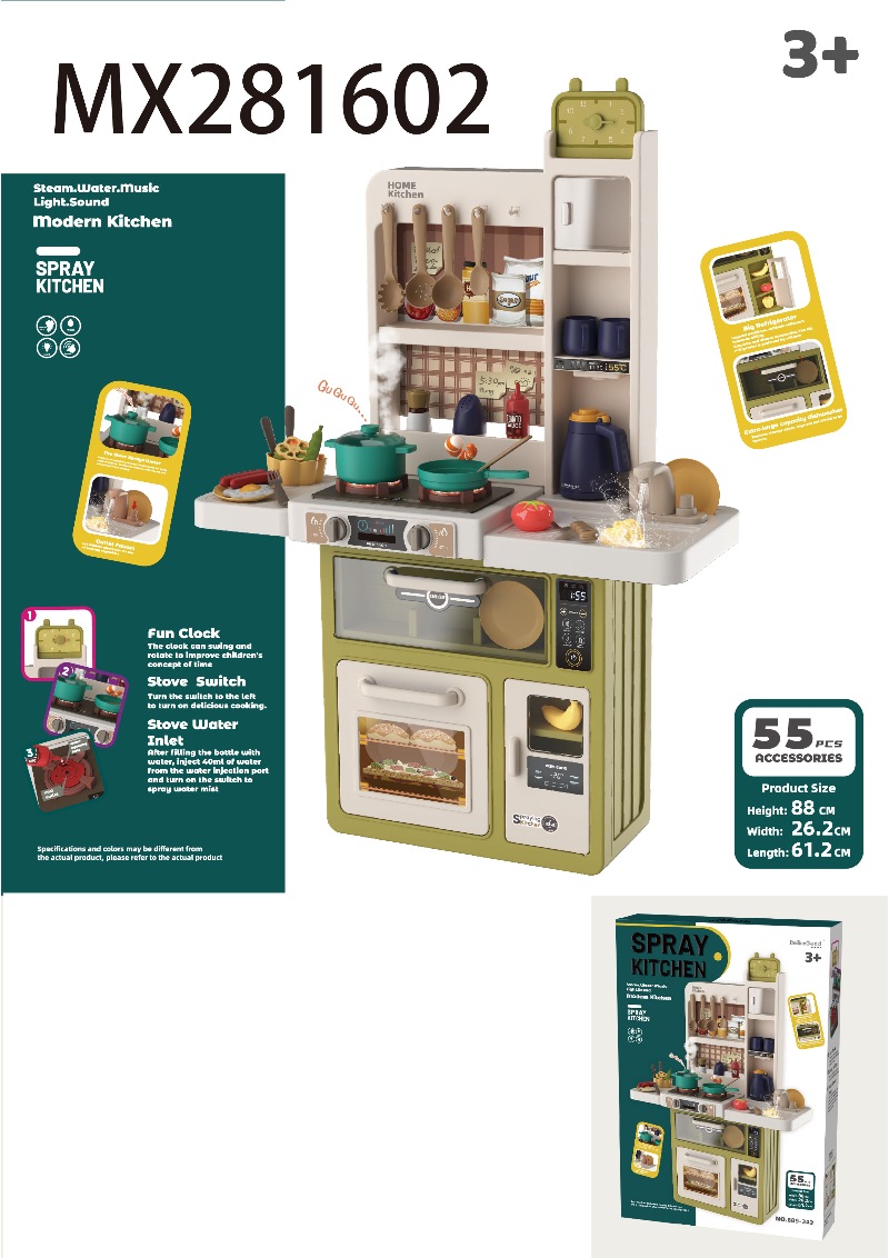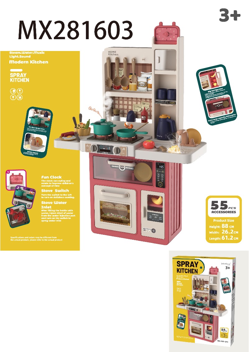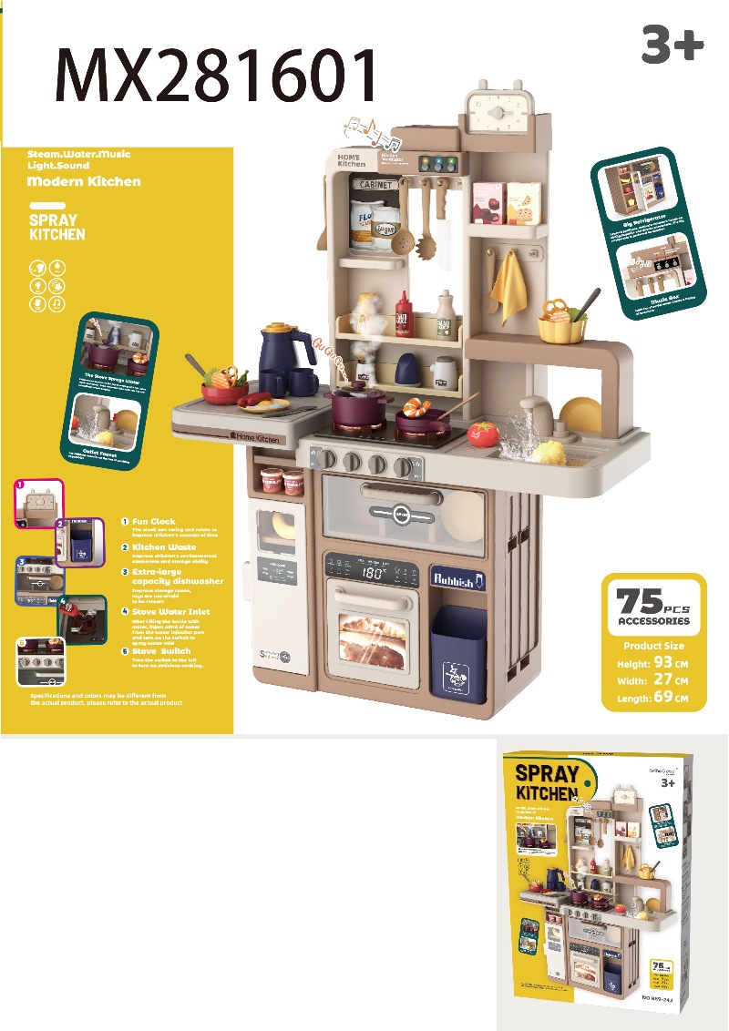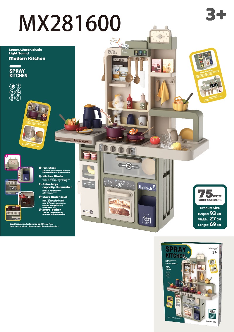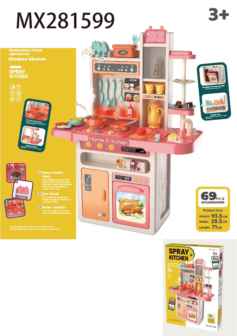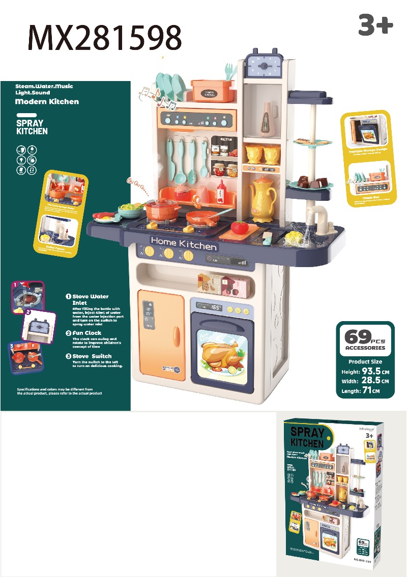 93.5cm喷雾厨房(带喷雾,声光,音效,出水功能)69 PCS,不包6*1.5AA