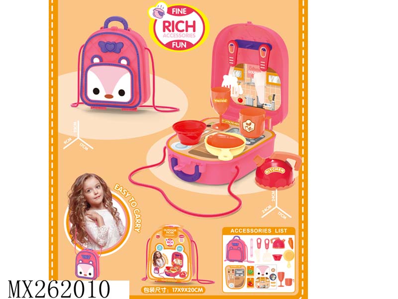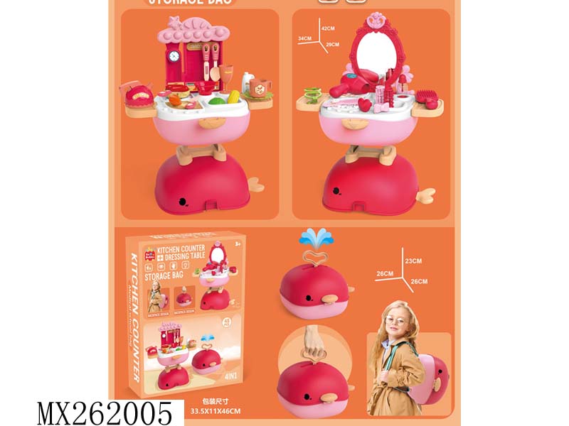 4合一过家家鲸鱼餐台+梳妆台手提箱+背包 45pcs