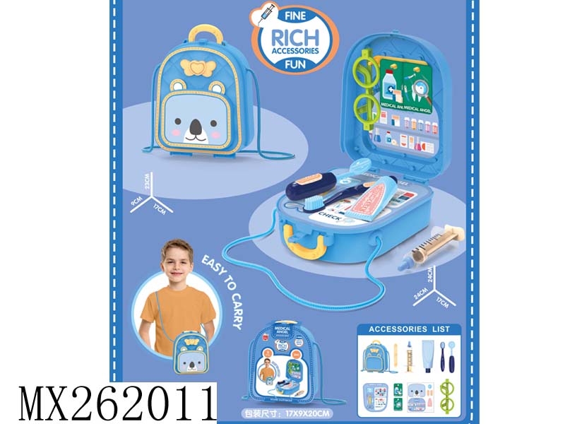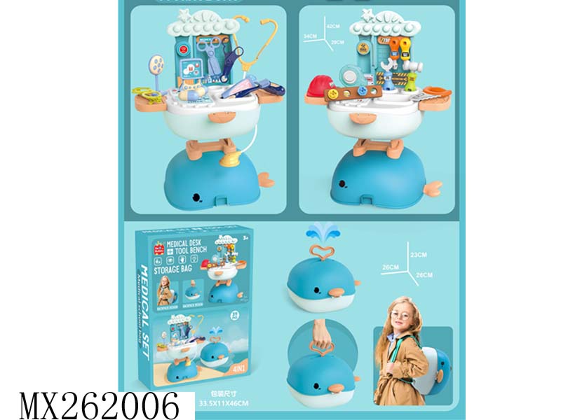 4合一过家家鲸鱼医疗台+工具台手提箱+背包 39pcs